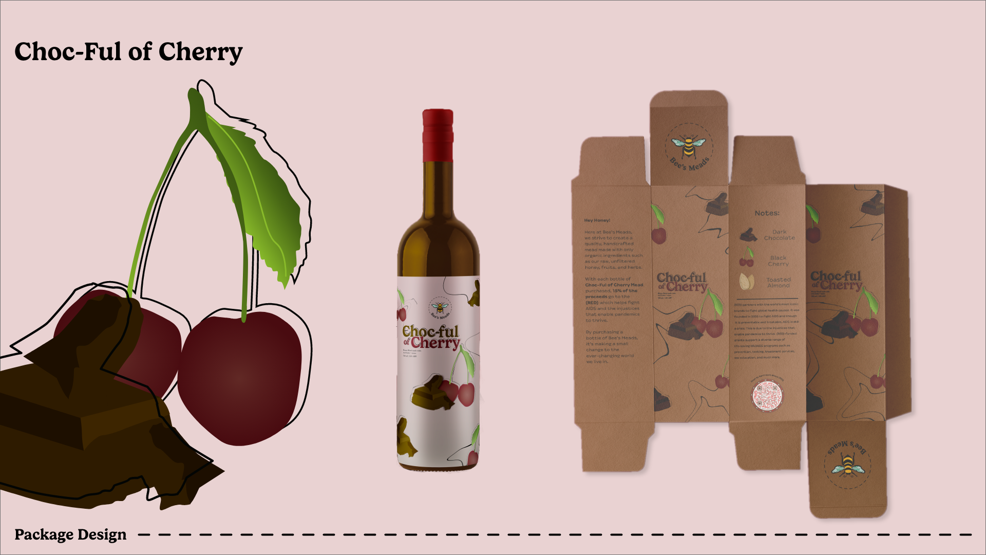 Choc-Ful of Cherry: Mead infused with chocolate and cherry (chocolate and black cherry illustrations) -- 15% of the proceeds will go to (RED) in December.