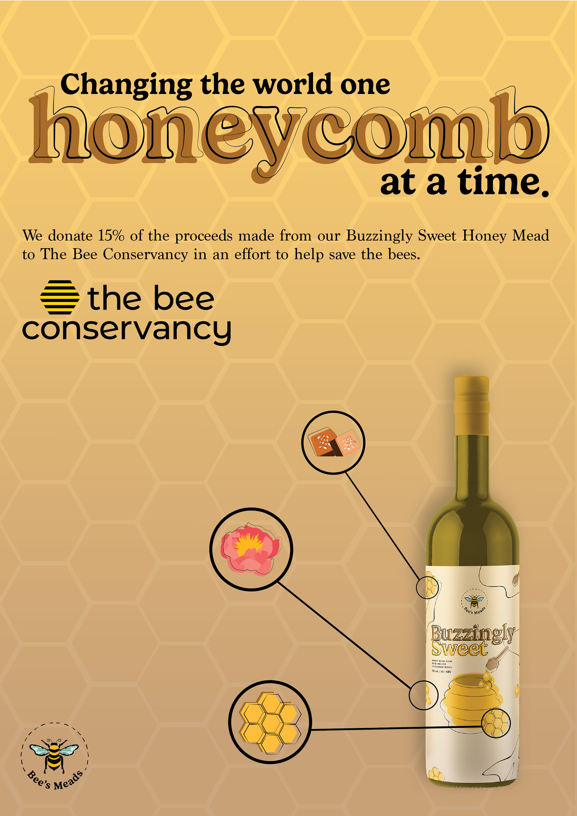 Buzzingly Sweet: Traditional Honey Mead (honey pot, honeycomb, and honey wand illustrations) -- 15% of the proceeds will go to the Bee Conservancy