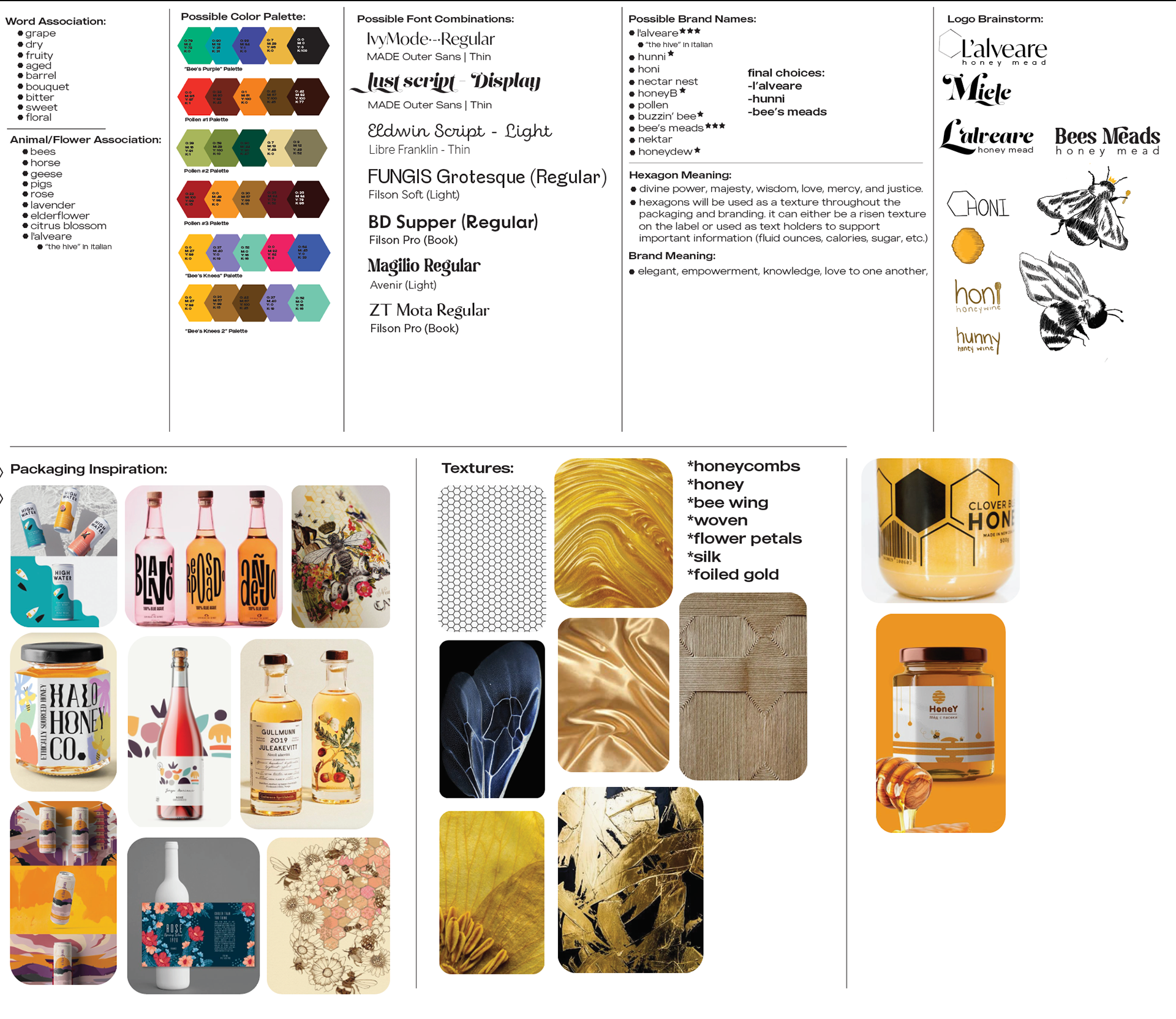 I wanted to keep my packaging bright in color while having an element of elegance. The label design consists of a pun/witty flavor name accompanied by an illustration that represents the flavors. The flavors are as follows: